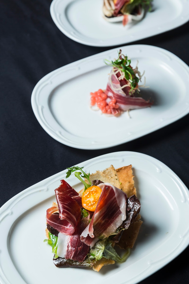 Iberico pork sandwich, lobster brioche bread, Salmon topped with bread crust and Phu Quoc pepper or Meredith Valley goat cheese.